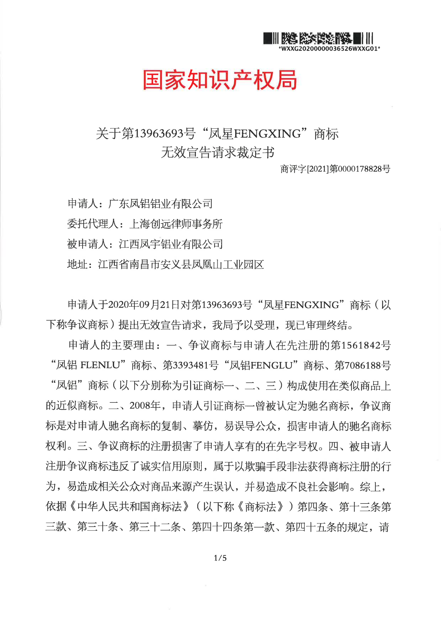 松原辉知队 | 国家知识产权局:“凤星”商标无效