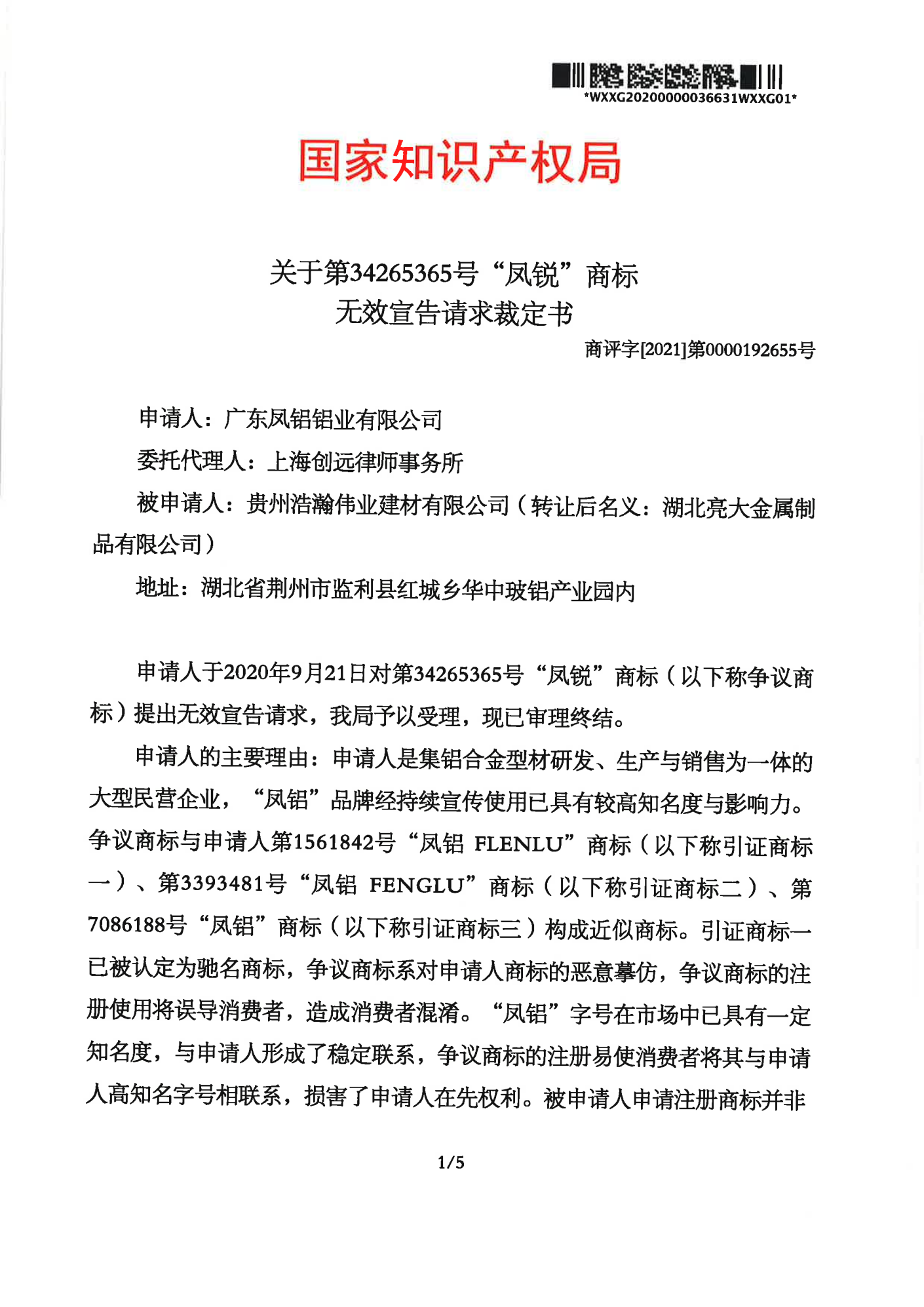 松原辉知队 | 国家知识产权局:“凤锐”商标无效